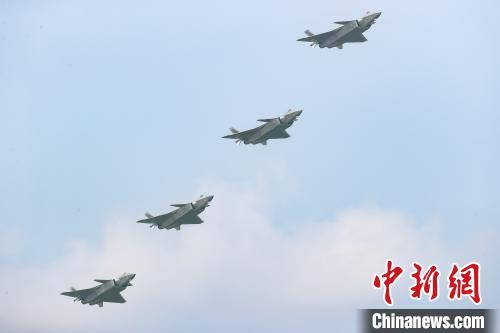 7月26日,2023年空军航空开放活动·长春航空展在吉林长春开幕。图为中国自主研制生产的隐身战斗机歼-20进行飞行展示。 中新社记者 贾天勇 摄