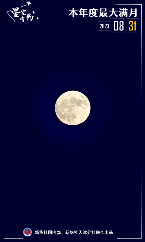 新华社天津8月29日电(记者周润健)天文预报显示,8月31日9时36分月球将达到满月的状态,这是全年最接近地球的满月,因此也是本年度最大的满月。