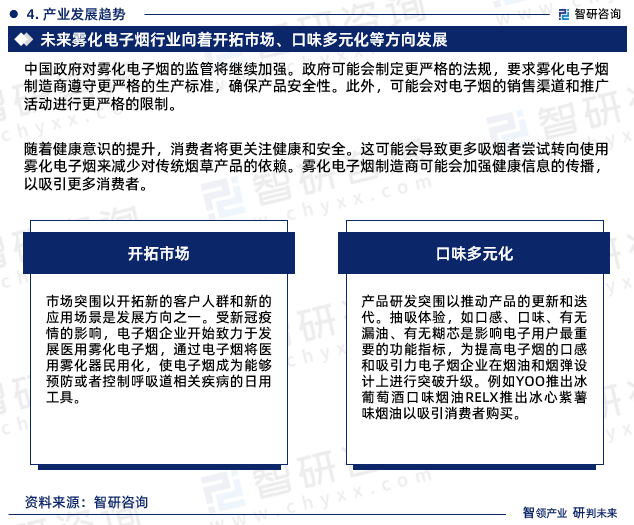 中国政府对雾化电子烟的监管将继续加强。政府可能会制定更严格的法规,要求雾化电子烟制造商遵守更严格的生产标准,确保产品安全性。此外,可能会对电子烟的销售渠道和推广活动进行更严格的限制。