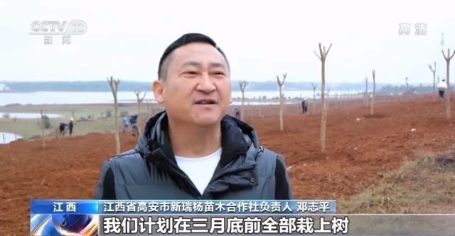 江西省高安市新瑞杨苗木合作社负责人 邓志平:这三四千亩的荒山,我们计划在三月底前全部栽上树,有专门绿化(用的)樟树,也有果树,还有(经济)价值较高的罗汉松。既兼顾了生态绿化效果,经济效益也能大大提升。