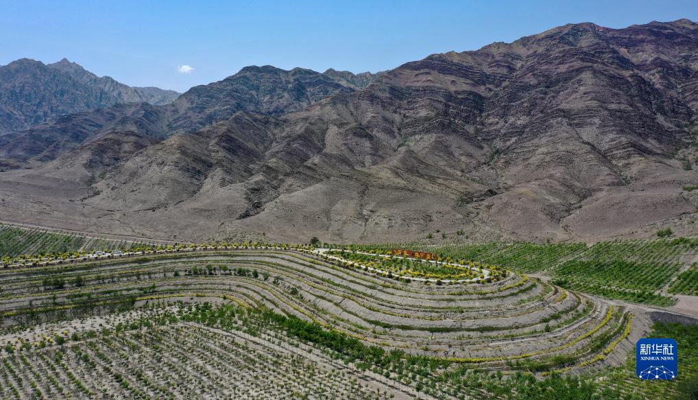 这是位于宁夏石嘴山市平罗县崇岗镇的贺兰山生态修复治理工程(6月14日摄)。