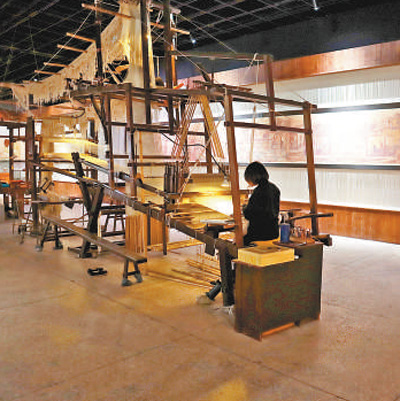 宋锦文化园内的古木织机。 |