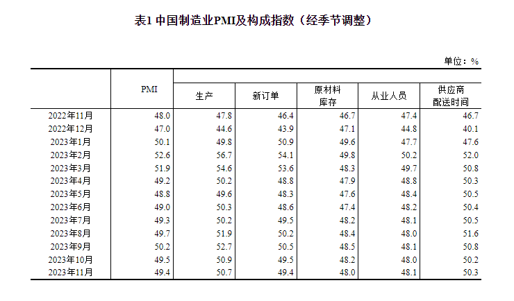 11月份,综合PMI产出指数为50.4%,比上月下降0.3个百分点,表明我国企业生产经营活动总体持续扩张。